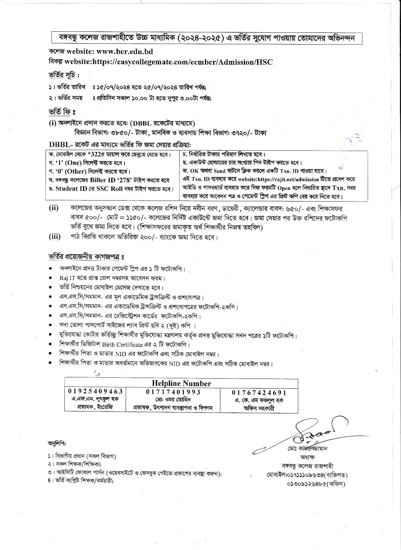 নতুন >>>> উচ্চ মাধ্যমিক (২০২৪-২০২৫) শিক্ষাবর্ষে ভর্তি সংক্ৰান্ত বিস্তারিত তথ্য